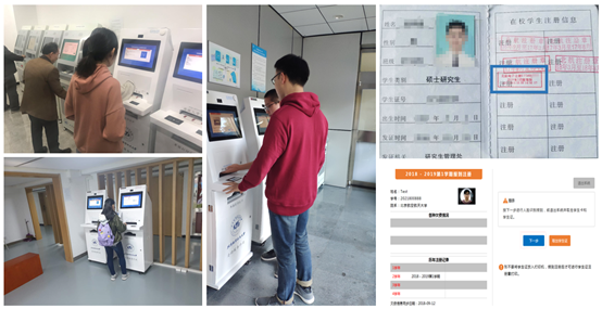 自助注册流程要求学生本人持校园卡在自助机上完成人脸识别校验,系统实时校验通过后在学生证指定区域按学期打印注册标识,全流程用时不到20秒,同时进行学籍状态验证、学费欠费校验等信息核准,在提升业务办理效率的同时,避免人工办理的诸多风险因素,确保在校学生相关信息准确。