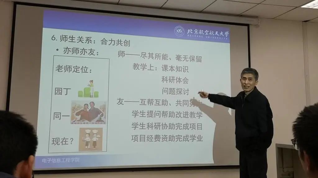 二是加强优秀党员教师榜样引领。严格落实师德师风第一标准,强化师德考核,实行师德师风“一票否决”。树立优秀教师榜样,学院张晓林、苏东林、张有光3位老师先后获学校“立德树人”卓越奖,李景文老师获学校“立德树人”优秀奖。通过多种形式大力宣传优秀教师事迹,强化优秀教师榜样引领示范作用;组织召开研究生导师培训会,开办“名师讲坛”,引导广大教师学习身边师德模范,争做优秀指导教师。结合学科特色,积极开展“空天报国”的北航精神教育,凝练通信与信息工程学科“空天志”、电子科学与技术学科“电磁魂”的发展内涵。