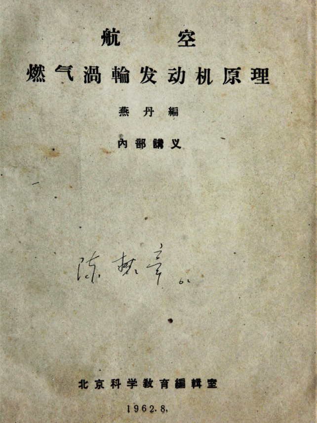 陈懋章编写的第一本教材:《航空燃气涡轮发动机原理》一书封面(1962)