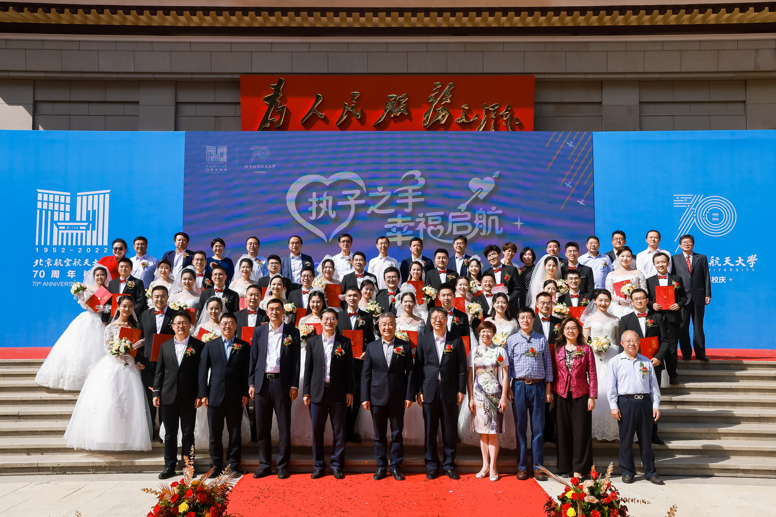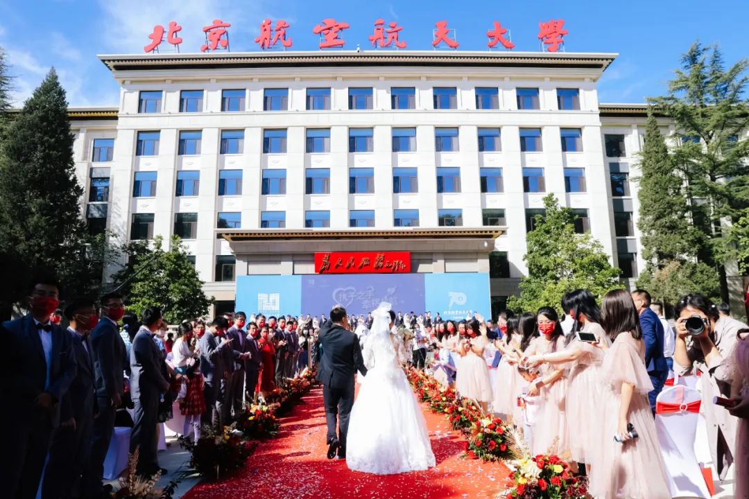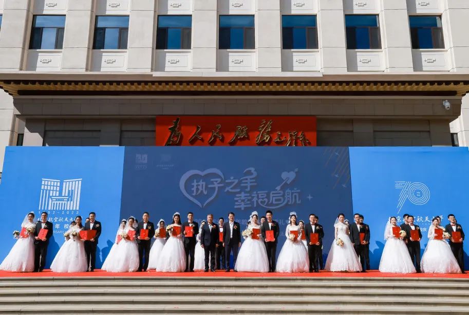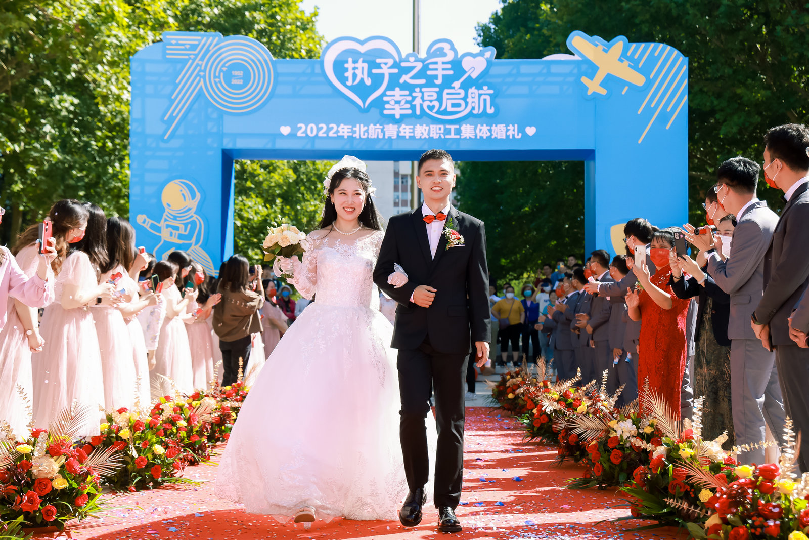 此次青年教职工集体婚礼是北航70周年校庆系列活动之一,旨在为新婚教职工送去美好祝福,引导他们树立正确的爱情观和婚姻观,积极承担家庭责任,重视家庭建设,展现了北航是一所浪漫、有爱、处处有温暖的大学,也将成为新人们人生中的一段幸福、特别、深刻的记忆。