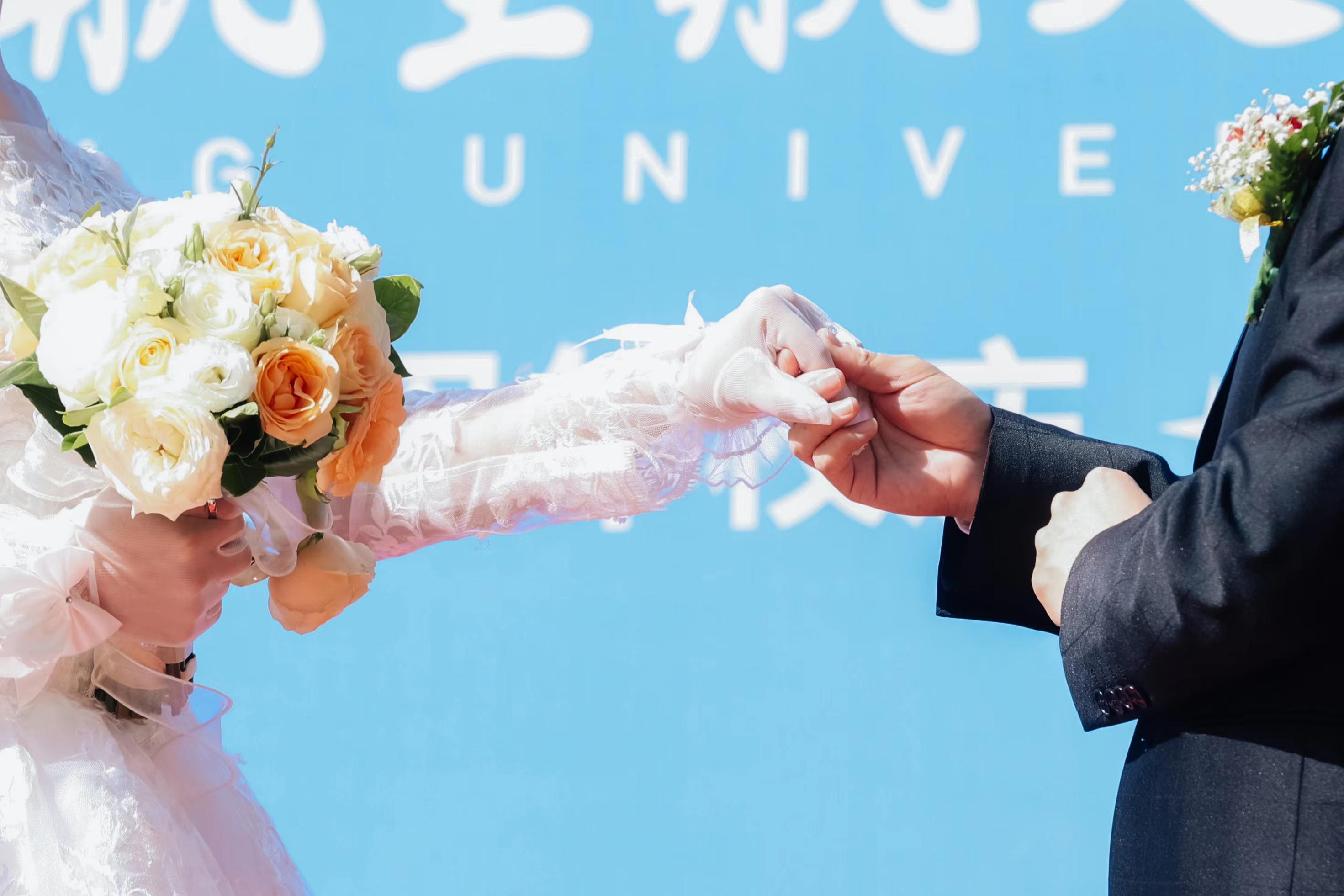 婚礼仪式在对新人们的一段采访视频中拉开序幕。访谈中,新人们讲述了彼此从相识、相知到相爱的过程,以及他们和母校北航之间的情缘,每一个故事、每一句心声背后都流露出他们对彼此真挚的爱、对小家的责任感,以及对北航母校深深的情感。