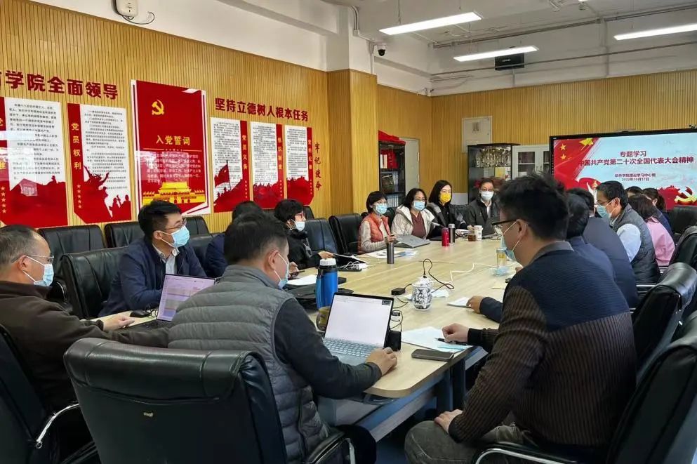 10月17日,全校各二级单位党委(党总支)理论学习中心组纷纷召开专题学习会,认真学习贯彻党的二十大精神。