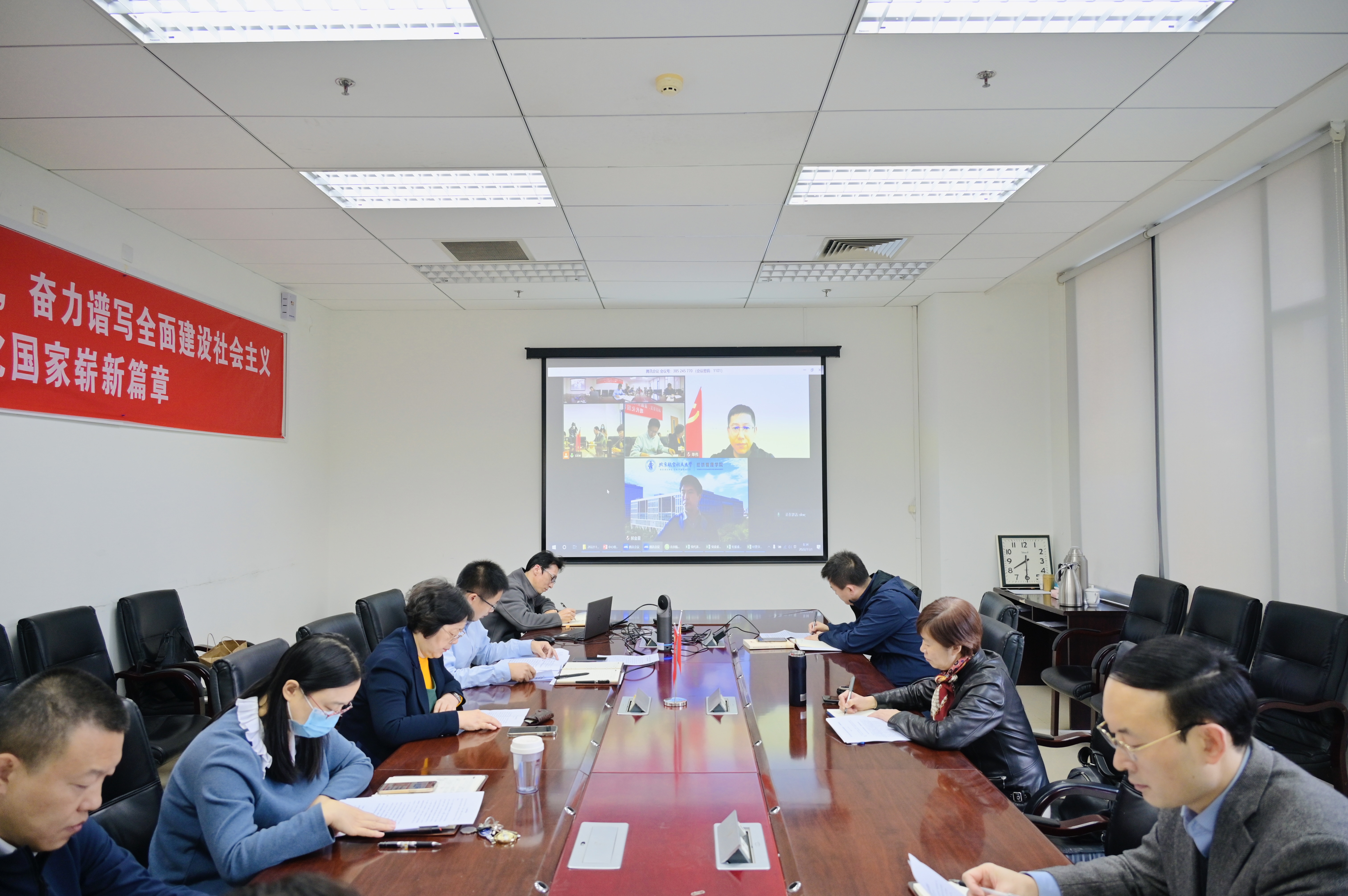 北航新闻网11月7日电(航宣/文 邸白鹭 宋超 田文浩 廉依倪 张可立 韩拯寰 赵金昊 吴桐/摄影)党的二十大系统擘画了以中国式现代化推进民族复兴的宏伟蓝图,对高等教育提出了新的更高要求,为高校改革发展提供了根本遵循和行动指南。学校把学习宣传贯彻党的二十大精神作为头等大事、首要政治任务,在开展一轮次校院党委理论中心组专题学习的基础上,10月31日至11月4日,组织各二级单位党委(党总支)理论学习中心组围绕党的二十大精神完成第二轮次全覆盖学习。全体校领导列席指导联系学院或单位党委理论中心组学习,围绕党的二十大精神交流思想体会,加强督促指导,凝聚奋进力量。