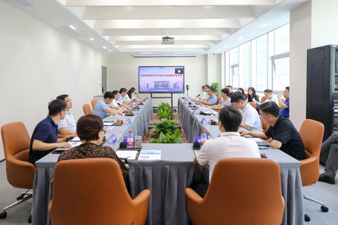 王云鹏在讲话中指出,学院要按照“高水平、新机制、国际化”的办学方向,解放思想,敢闯敢试,理顺顶层设计和办学规划,积极探索管理模式、人才队伍等建设新路径,建立起完整、务实、长效的工作机制,使中法航空校园办学工作焕发出蓬勃而持久的生命力;要根据办学规划,充分考虑北京杭州两地学科、专业布局,统筹协调好教学和科研平台建设,分阶段、有序配置建设资源,大力推动学科、平台、团队一体化建设,做好国际交叉科技合作这篇大文章,用好用足省市政策加快推进国际交叉科学研究院建设,探索高水平国际化人才引育新机制,着力打造属地国际化人才中心和创新高地,赋能学校增量发展;要聚焦人才培养和学科拓展两条主线,以中法航空学院建设为纽带,强化“国际化”优势特色,加快探索高水平、精英式、本硕贯通的国际工程师教育培养范式,努力把中法航空校园建设成为世界一流的中外合作办学典范。