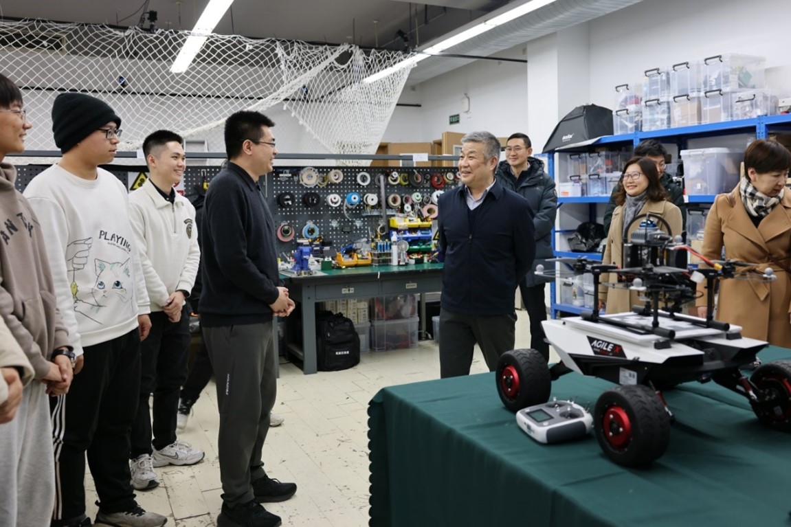 赵长禄一行还前往先进长航时无人机系统技术教育部工程研究中心和航空器先进设计技术工信部重点实验室(气动弹性实验室),看望了在校教职工和在校学生。“你们是研究生还是本科生?”“寒假留校有什么困难?”赵长禄与他们亲切交流,关切地了解他们的学习、科研、生活情况。赵长禄表示,学校结合留校师生情况,动态调整学校后勤保障工作,切实满足留校师生学习科研生活需要,确保大家过一个祥和愉快、顺遂安康的新春佳节。他强调,年终岁尾,要做好实验室安全管理工作,守住安全生产底线,强化科研保密意识,层层压实安全责任,确保校园安全稳定和师生生命安全。他希望大家继续踔厉奋发,勤奋学习、潜心科研,要注重科研质量,量质并举,与教职员工一同凝心聚力,共同推动学校各项事业高质量发展,为加快实现高水平科技自立自强贡献力量。