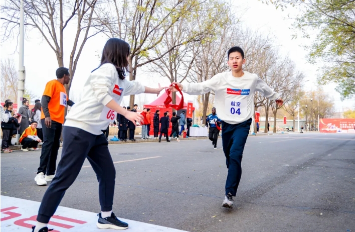 备受关注的10公里接力跑当中,选手们携手并进,每一次精准交接绸带,都是团队默契和凝聚力的展现。