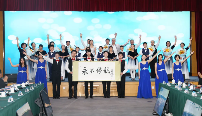 北航老同志合唱团、大学生合唱团和实验学校小学生合唱团共同演绎北航关工委原创主题歌《永不停航》。