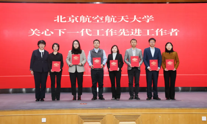 张雪为“北航关心下一代工作先进工作者”颁奖