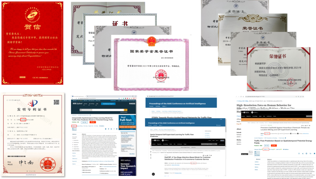 从黄土地到北航一路走来,寄家豪以实际行动诠释“一份寄身家国的豪迈”。他以勤勉笃学的态度和善于思考的精神,连续两年综合成绩排名年级第一,荣获20余项荣誉奖励。在导师王静远教授的指导下,寄家豪瞄准“可解释时空深度学习”这一前沿课题,展开了一系列原创性研究,发表了12篇学术论文(第一作者/通讯作者7篇),涵盖TKDE、KDD、AAAI等国际顶级期刊会议,更有3篇论文入选北航优秀学术成果奖。