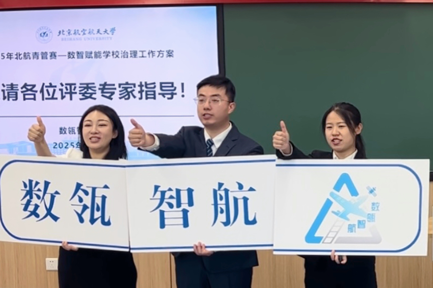 决赛围绕“数智赋能”在教学、科研、管理、服务等方面的应用,要求各参赛团队通过开展调查研究,积极为学校发展提出建设性方案。由电子信息工程学院姜宇(队长)、学生工作部刘珂旬、校工会夏菊萍组成的“掌上赋能团队”,设计了一款全方位服务师生的“掌上北航”APP。方案从服务师生需求出发,以全量化、定制化、个性化为手段,以调研实、设计实、落地实为特点,以推动智慧化管理与服务水平提升为目标,力争做北航人手机中使用时间最长的移动端应用,让北航师生天天用、每个人都觉得很好用、喜欢用;由学生中心任豪(队长)、党政办公室林鹭、研究生院周婧琳组成的“数瓴智航团队”,以“发挥‘数据要素×'效应,用好‘人工智能+’赋能”为题,提出了一套学校数智赋能治理工作方案,并围绕“数据决策增智工程:校院两级数据平台及智慧决策”、“教育教学提质工程:构建人才培养数智治理生态体系”两个特色方案展开详细讲解;由新媒体艺术与设计学院孙振西(队长)、新媒体艺术与设计学院于秋漫、自动化科学与电气工程学院彭越组成的“1+1+1数智团队”以“数智航行:以AI赋能北航教管服新生态”为题,构建了教学、管理、服务“三维协同”的数智共生系统,通过打造“小航”智能服务,为教学做加法、管理做减法、服务做乘法。