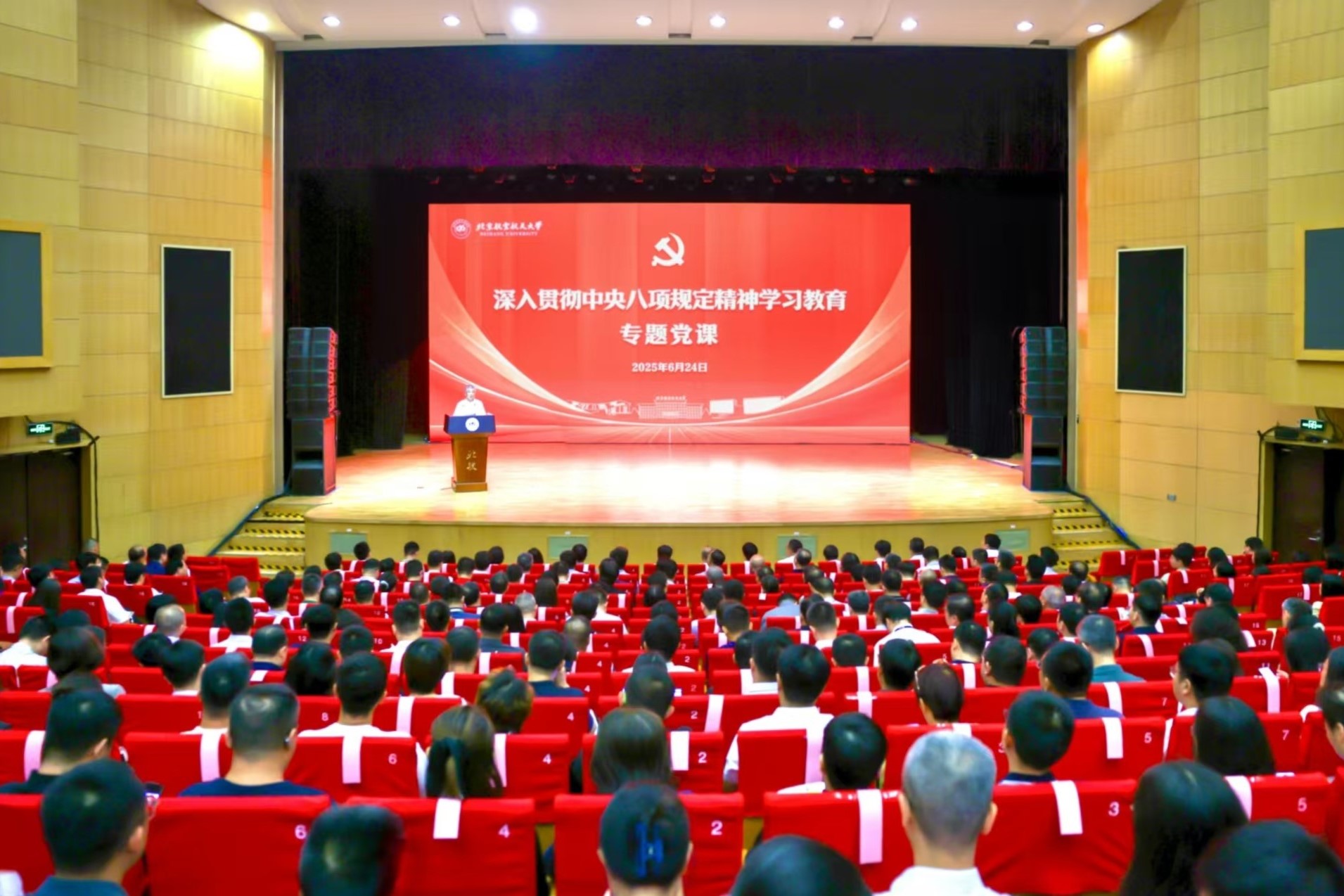 北航新闻网6月24日电(记者 王晴 任和/文 邸白鹭 冯浩/摄影)6月24日上午,北京亚洲成人在线一二三四五六区党委书记赵长禄以“锲而不舍落实中央八项规定精神 以优良作风推动学校高质量发展”为题讲授专题党课。深入贯彻中央八项规定精神学习教育中央第十一指导组到会指导。全体校领导,校党委委员、纪委委员、全校管理七级岗(含)以上干部、关键岗位重点领域年轻干部、各二级单位党委(党总支)专职组织员、纪检委员等在晨兴音乐厅现场聆听了党课。党课由校长、党委副书记王云鹏主持。