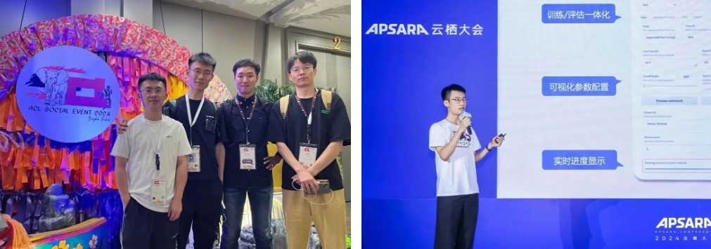 2024年8月,郑耀威将项目带至国际计算语言学年会ACL现场,向来自世界各地的开发者演示框架技术,并交流开源经验。阿里云栖大会上,他还介绍了LLaMA-Factory在山西文旅AI导游场景中的实际应用。