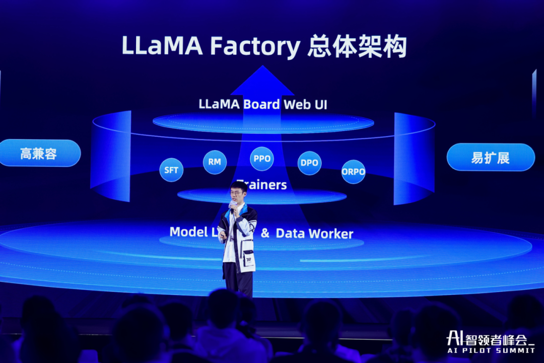 郑耀威积极将学术成果与社会应用紧密结合。他多次受邀参加行业峰会、开发者大会,与全球各地的LLaMA-Factory用户面对面交流,共同探讨技术难题。2023年11月,在北京举行的AICC人工智能计算大会上,他首次发表主题演讲,深入讲解LLaMA-Factory的技术创新与广泛应用。
