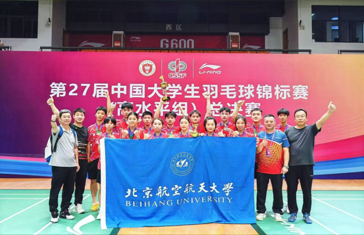 北航新闻网8月27日电(通讯员 王子翀)8月18日-26日,第27届中国大学生羽毛球锦标赛(高水平组)总决赛在厦门杏林文体中心举办。北航体育部付庆镕、石磊、樊秋月三位老师带领8名男队员、6名女队员参赛,最终收获女单冠军、女双冠亚军、男团亚军、女团亚军等优异成绩。