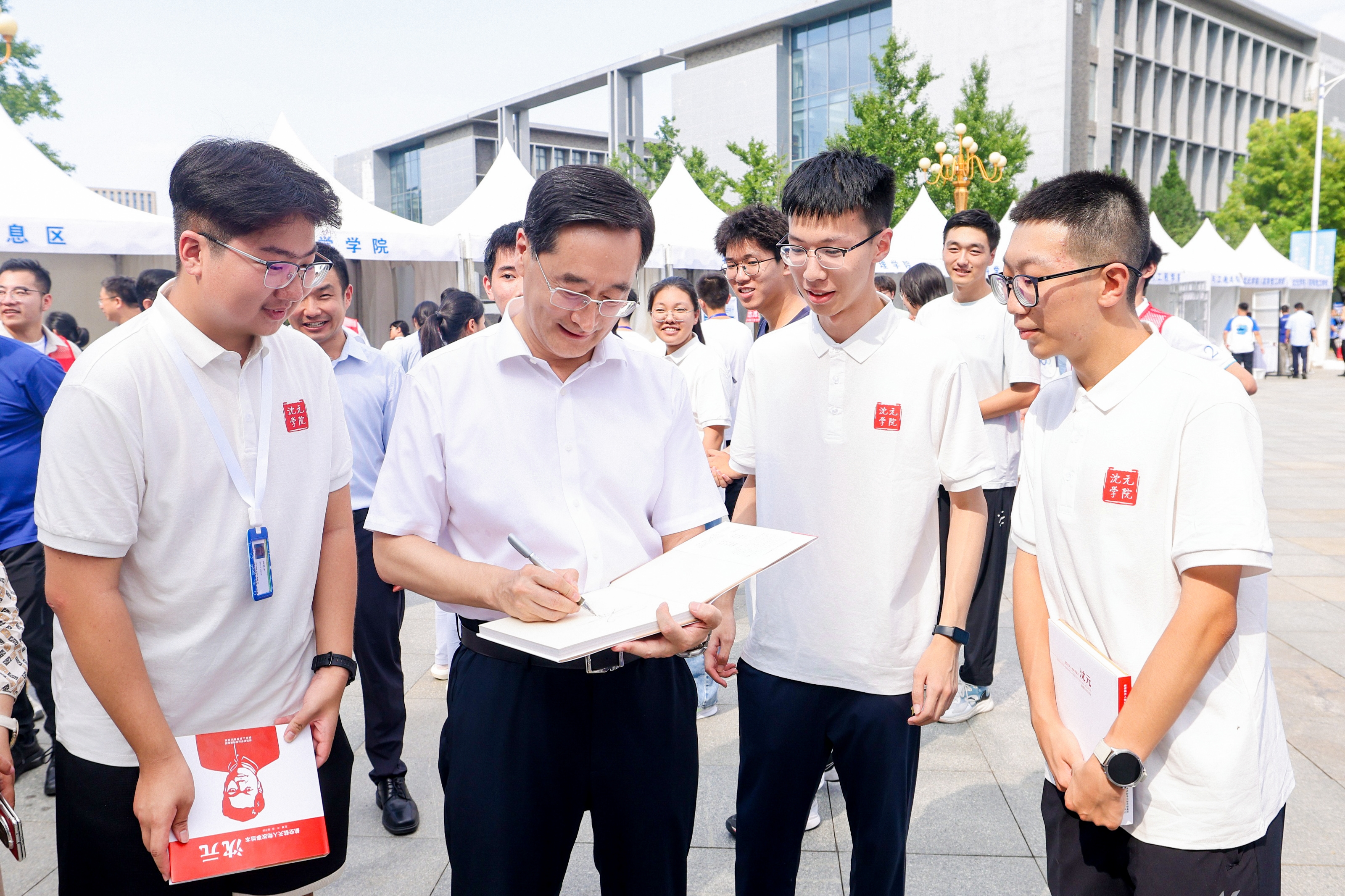 “欢迎你们来到北航,开启全新的大学生活”,“交给学校你们就放心吧”。校党委书记赵长禄、校长王云鹏等校领导来到迎新现场,与前来报到的2025级新生及家长们亲切交流,向他们表示热烈欢迎,为当天过生日的同学赠送生日大礼包,并为申请“绿色通道”的同学赠送暖心大礼包,同时慰问参与迎新工作的师生。副校长邓怡参加有关活动。