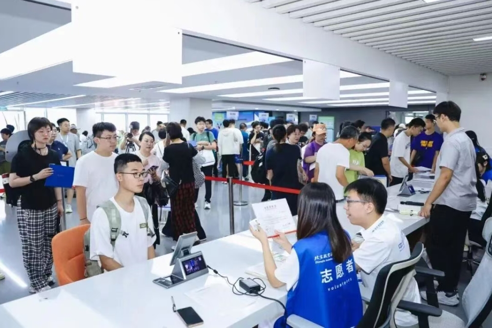 北航新闻网8月30日电(记者 王晴 任和 通讯员 王婧仪/文 记者 邸白鹭 李彤韵 冯浩 通讯员 张西贝 鲍哲/摄影)长空万里,金秋启航。8月29日-30日,4425名2025级本科新生在京杭两地三校园报到,与北航如约相见,开启人生新篇章。今年,北航本科生迎新现场分别设置在学院路校区求是广场、沙河校区世纪之声广场、杭州国际校园师生服务大厅。