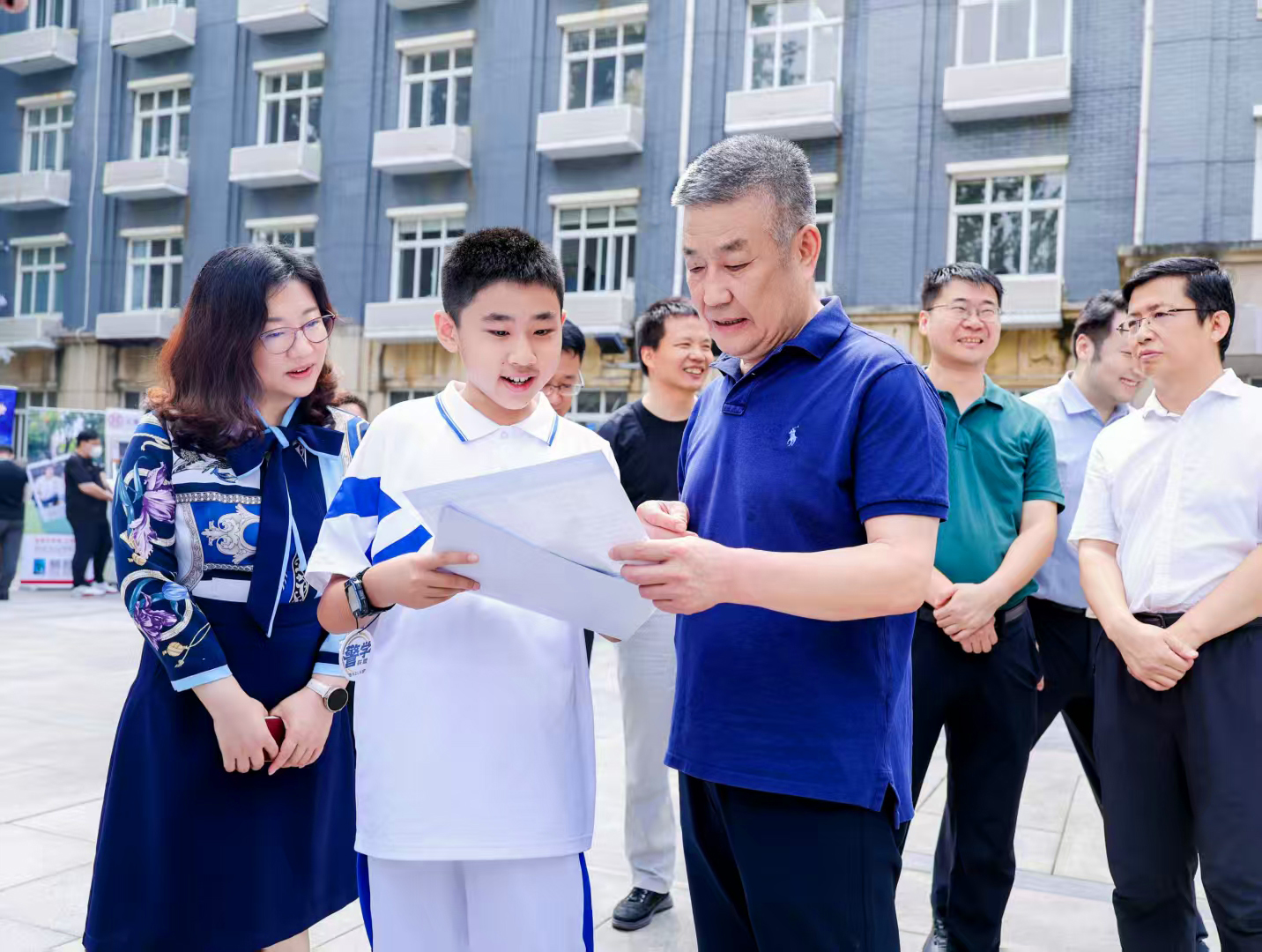 在杭州国际校园,副校长赵巍胜在杭州国际校园参加迎新活动,与新生交流。