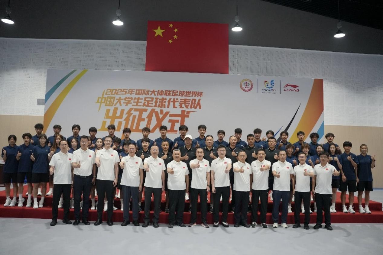 北航新闻网8月30日电(通讯员 高胜杰)8月29日,2025年国际大体联足球世界杯中国代表队出征仪式在北京李宁中心举行。教育部学生体育联合会、大连市政府、李宁公司及四所参赛高校代表队齐聚一堂,为即将赴大连参赛的中国大学生代表队壮行。北京亚洲成人在线一二三四五六区高水平男足凭借2024年全国青少年校园足球联赛大学男子甲组冠军,以及第二届亚洲大体联足球亚洲杯季军的优异战绩,从全国高校脱颖而出,赢得了本次世界杯入场券。