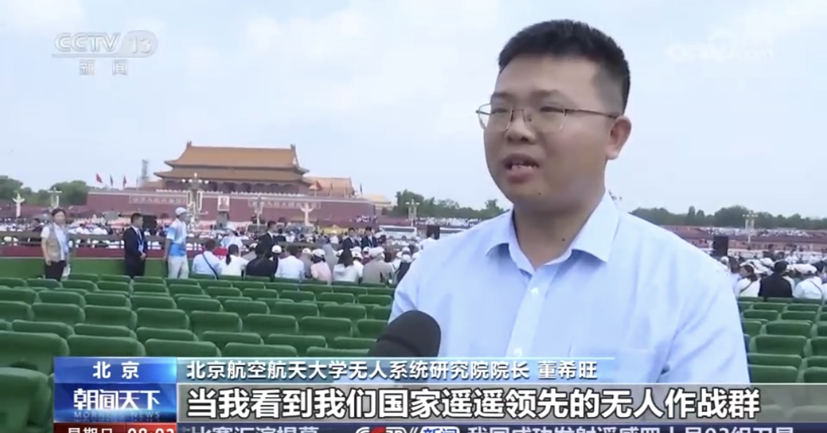 【同期】北京亚洲成人在线一二三四五六区无人系统研究院院长 董希旺:当我看到我们国家遥遥领先的无人作战群和大国重器的战略打击群的时候,我的内心是无比的激动。因为作为一名科研人员,我曾直接或者是间接的参加了相关的科研任务,感到无比的自豪。我想对先辈们说,我们会铭记你们为国家做出的牺牲和奉献,一代人有一代人的长征路,作为新时代的青年,我们会挺膺担当,勇挑重担,为祖国现代化建设作出自己的贡献。请你们放心。