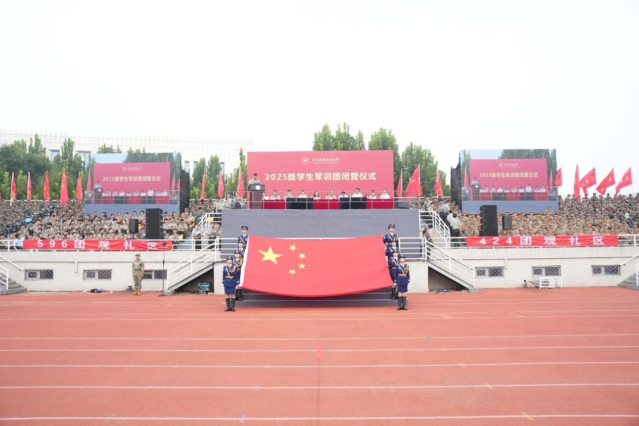 仪式最后,吴江浩代表学校向承训部队赠送锦旗,北航2025级学生军训团闭营仪式落幕。