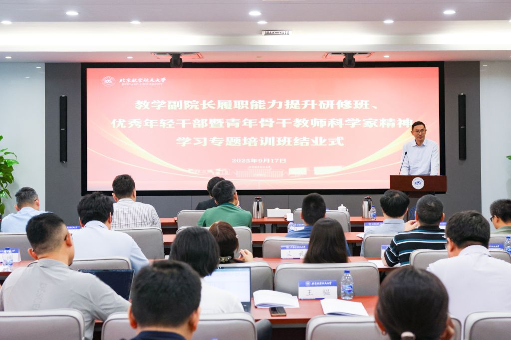 校党委副书记程波在结业式中指出,青年骨干教师要坚定理想信念、锤炼过硬本领、坚持学用结合,切实将培训成效转化为落实立德树人根本任务的具体行动、服务国家战略需求的责任担当、推动科技自立自强的强大动力。学员纷纷表示,新时代我们更需要继承和发扬以“空天报国”为内核的北航精神,在人才培养中强化爱国奉献教育,在科研工作中传承艰苦奋斗精神,在服务师生中践行责任担当,为学校深化“双一流”建设贡献更大力量。