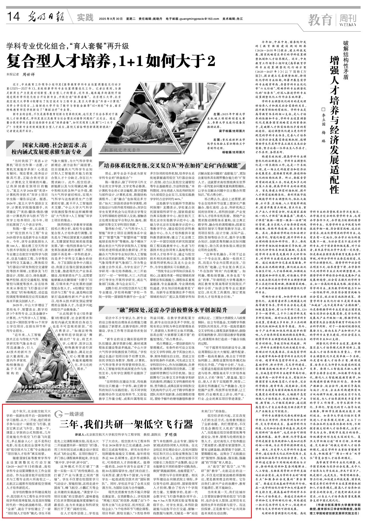 《光明日报》2025年9月30日【一线讲述】栏目刊发我校罗明强教授关于北航在全国率先开设“低空技术与工程”专业推出的“项目制人才培养”的讲述: