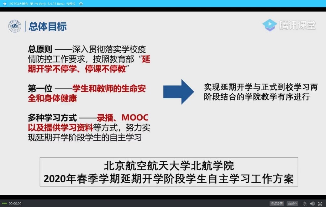 在因疫情影响而延期开学的特殊时期,士嘉书院在北航党委的领导下,做好疫情防控工作的同时,积极开展线上自主学习各项准备工作,通过微信公众平台积极推送线上学习资源,引领学生居家自主学习。本次线上班会,旨在督促广大同学调整状态,规律作息,全身心投入到线上学习中,停课不停学,学习不断线,努力掌握扎实学识,更好地履行北航学子的社会责任。