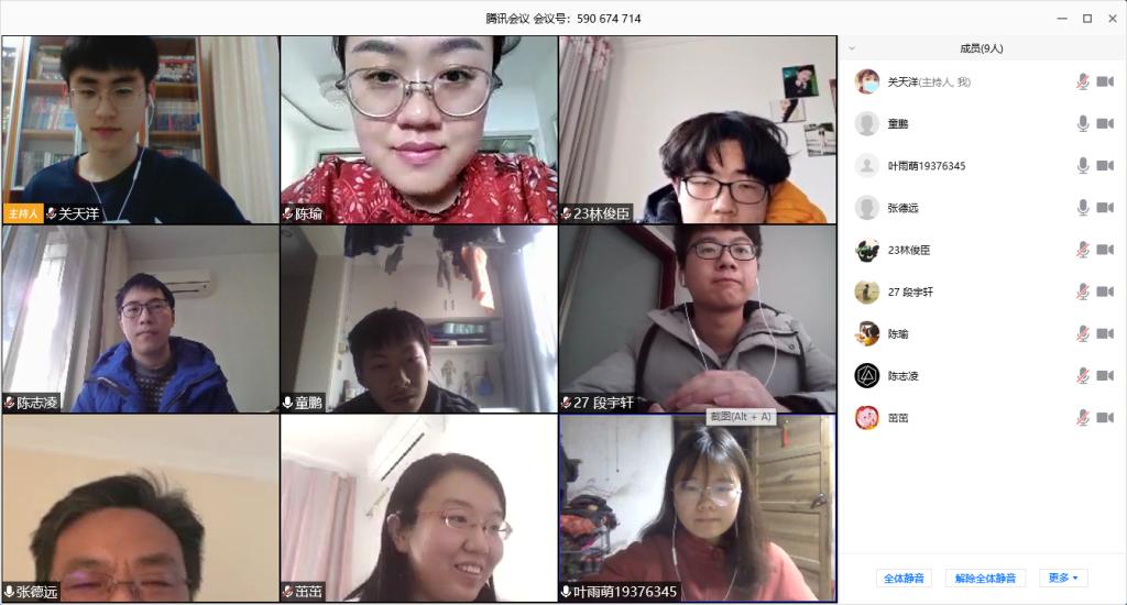 下午四点,张德远、王少萍、李广玉携书院执行团队与书院在武汉的同学取得了联系。视频连线中,领导老师们关切地询问了同学们的居家近况,并对同学们的学业和未来规划进行了指导。张德远勉励同学们利用好线上学习时间,锤炼自己的自主学习能力;鼓励同学们不畏压力,将压力转化为动力,有所担当、有所成长;要善于思考,学好知识的同时着力发掘自己的创造力。王少萍殷切地关心了同学们的近况,仔细询问了每位同学学习或生活上存在的困难,并提出了三点建议——按时作息保持自律、做好未来规划以及思考人生价值和社会担当。李广玉结合当前疫情发展,耐心地为同学们讲述了国内外防疫大势,再次明确了不返京、不返校的要求,并鼓励同学们积极锻炼身体,参与书院的体育锻炼打卡活动。倡议同学们在课余时间积极承担家务,孝敬父母。