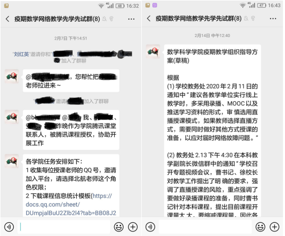 未雨绸缪,一马当先。疫情刚一爆发,学校计划线上教学,还处在寒假中期,数学科学学院校级优秀班主任刘红英老师积极响应学校学院号召,立刻投入线上教学工作的前期准备,她倡议并着手创立了数学科学学院“疫期数学网络教学先学先试群”。刘红英第一时间购置了录课所需设备:用于手写屏幕的数位板、摄像头和耳麦等,经过实验及试讲,写下实际使用体验并分享给全院老师参考,为其他老师的线上教学提供了经验与帮助。难能可贵的是,作为一名普通的教师,她还一手起草了《数学科学学院疫期教学组织指导方案(草稿)》。
