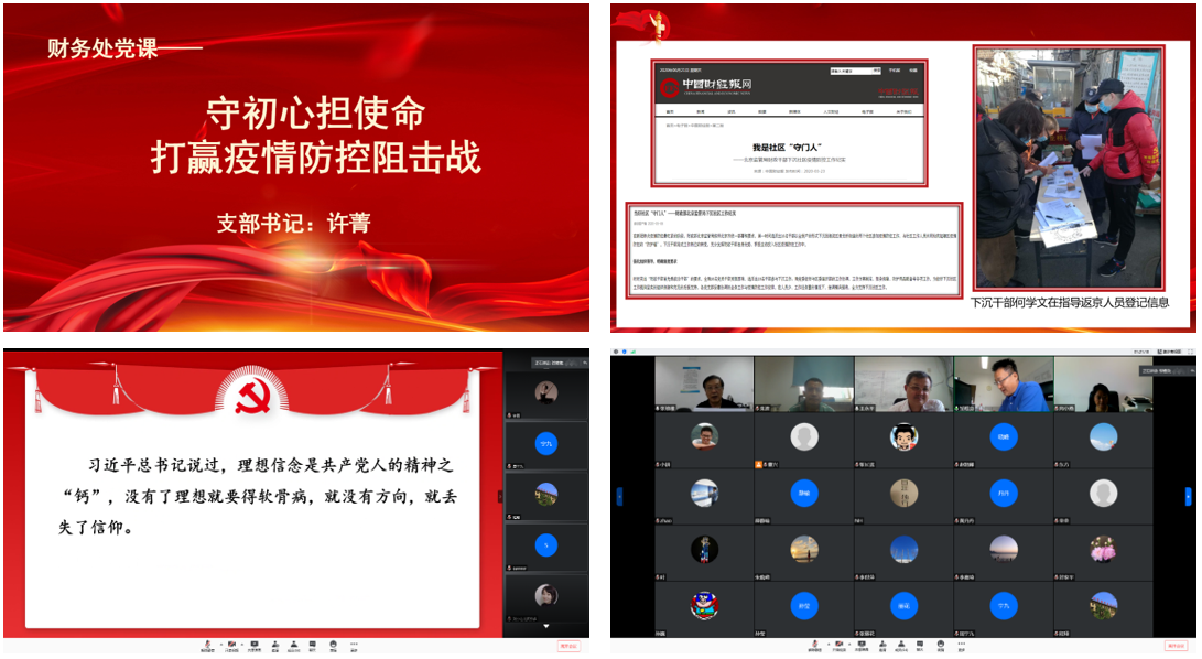 理论学习和日常党性教育是支部开展所有工作的重要基础,财务处党支部始终坚持理论学习底线要求,“战疫宣传季”期间安排不同内容党课为同志们提高理论涵养、加强党性修养提供充足保证。