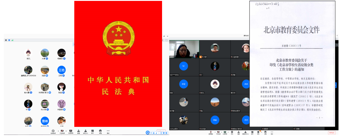 在战疫斗争进行的同时,党和国家同步推进治理体系和治理能力现代化工作,持续完善构建社会治理体系。北京市于5月1日正式全面实施垃圾分类政策,规范引导各行业分类处置垃圾,提高生活环境治理水平。经前期长期论证及起草修改工作,国家于5月28日第十三届全国人民代表大会第三次会议表决通过《中华人民共和国民法典》。支部协调资源,组织参加垃圾分类及民法典政策解读党课,按“战疫宣传季”要求有效落实中央指示精神。