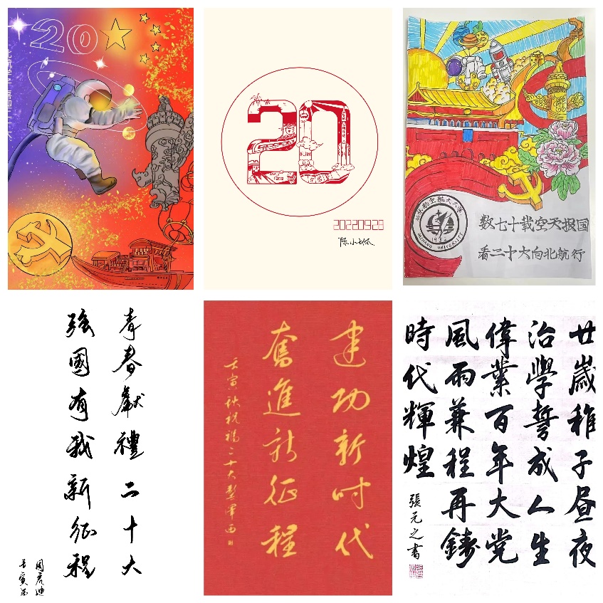 经院级、校级两轮评比选拔,最终共选出75件优秀奖获奖作品,包含30张照片合影、30件书画作品及15个祝福视频,在学工部“微言航语”公众号进行展示。活动系列推送发出迄今,广大北航学子纷纷参与,阅读转发,见证了北航学子对党的二十大的高度关注,表达了对党和祖国的无限热爱。