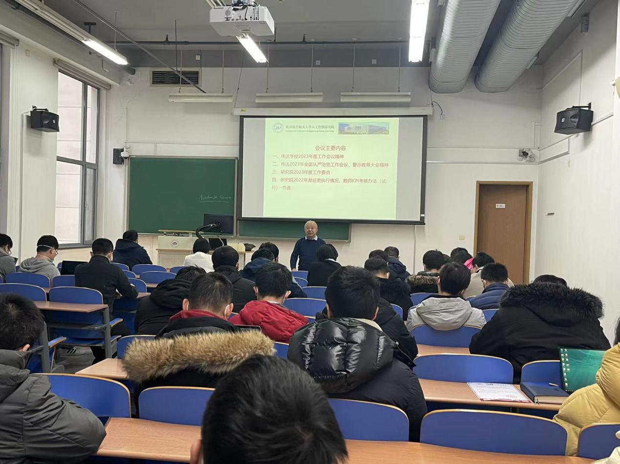 北航新闻网2月27日电(通讯员 丁琴)2月22日,人工智能研究院在新主楼B106召开2023年度全院教职工大会,会议传达学校2023年度工作会、全面从严治党工作和警示教育大会精神,对研究院2023年重点工作进行部署。会议由人工智能研究院党委书记金蓉主持。