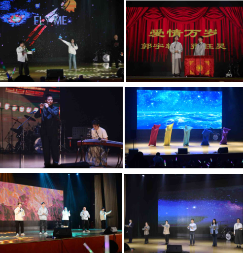 晚会的节目丰富多彩,激情四射的舞蹈《Glowing Moonrise》和《FREEDOM》点燃了现场的热情,深情款款的歌唱《宇宙飞行》触动了观众的心弦。幽默诙谐的相声《爱情万岁》带来了欢笑,扣人心弦的器乐合奏《出埃及记》展现了音乐的力量。被套舞《被套也疯狂》以其独特的艺术形式和深刻的内涵,赢得了观众的阵阵掌声。《稻花》则以其悠扬的旋律和深情的歌词,触动了观众的心灵。歌曲演唱《若月亮还没来》以其温柔的歌声,缠绵耳边,当银白的月光洒向世间,这夜回归浪漫与诗意。《白雪公主和六个小精灵》以其别具一格的表演,为晚会增添了无限趣味。最后,由书院执行团队带来的朗诵《致真逐梦,闪耀星空》以北航为背景,展现了学子们对梦想的执着追求、对知识的渴望以及对未来的无限憧憬,绘制出一幅北航人以真知逐梦、在星空下闪耀的青春画卷。
