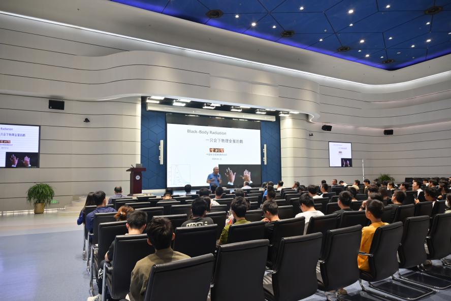 黑体辐射研究是近代物理70余年的前沿课题,被誉为一只会下金蛋的鹅。曹则贤指出,黑体辐射是近代物理学的入门功课,通过举例分析,深入浅出地解释了黑体的概念。他讲到,黑体辐射谱抗测量误差的特性带来了辐射标准和绝对温度参照,谱分布公式对模型的不敏感使得黑体辐射成为独特的物理研究母题,他带领在场师生认真回顾了黑体辐射研究的历史细节,进行了一趟超越教科书的物理学习之旅。