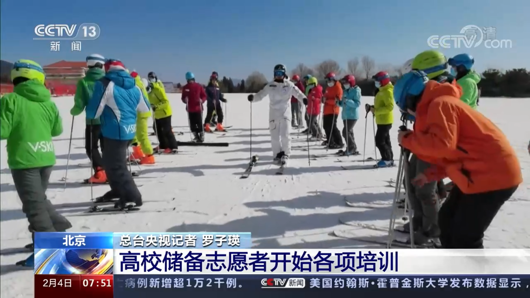 【外景记者】这里是在北京延庆的石京龙滑雪场,24名来自北航和中农大的冬奥会储备志愿者骨干正在进行滑雪培训课,他们今后将作为延庆赛区高山滑雪项目的志愿者。