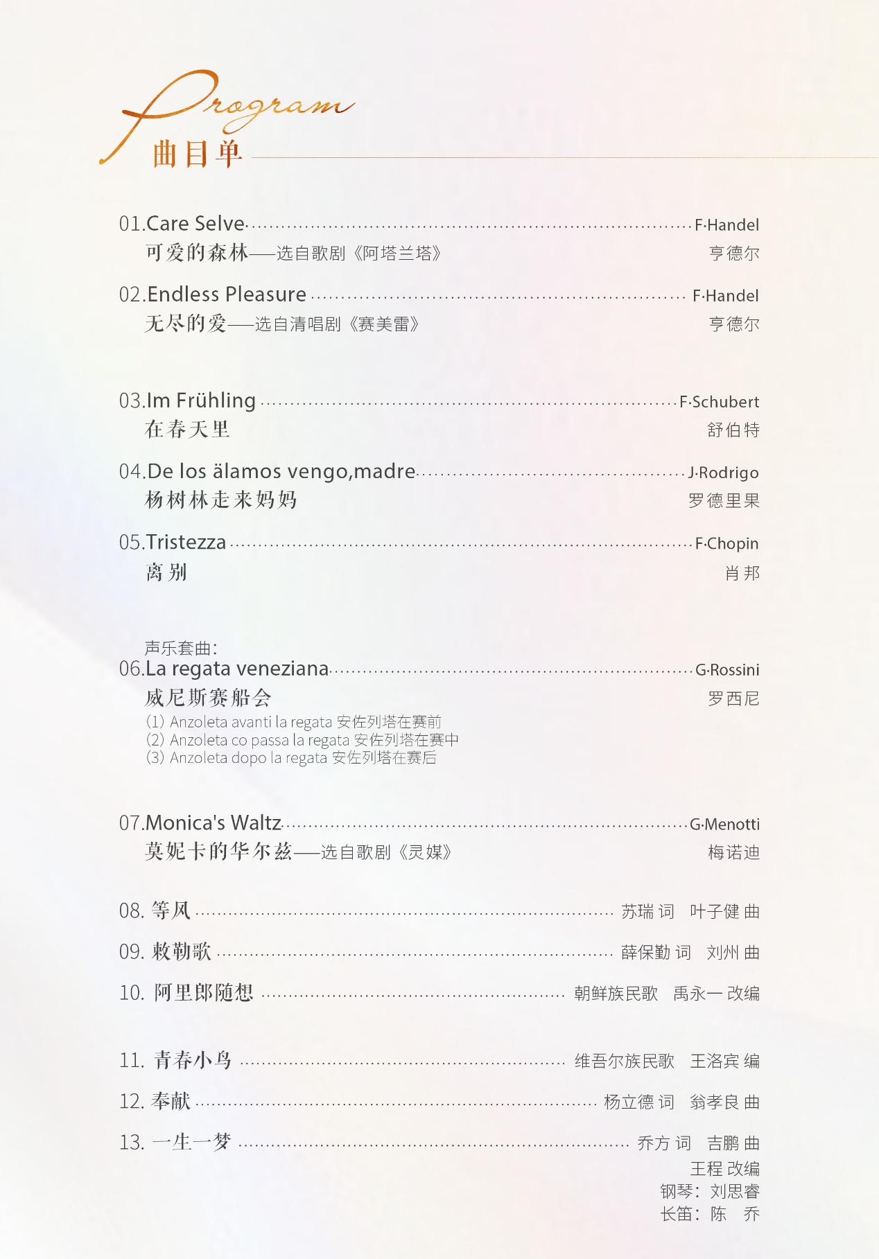 作为优秀的声乐钢琴伴奏家,具有娴熟的演奏技巧和丰富的作品积累,多年来曾受邀与吴碧霞、郭森、石倚洁、DENYCE GRAVES等众多国内外著名歌唱家合作演出。