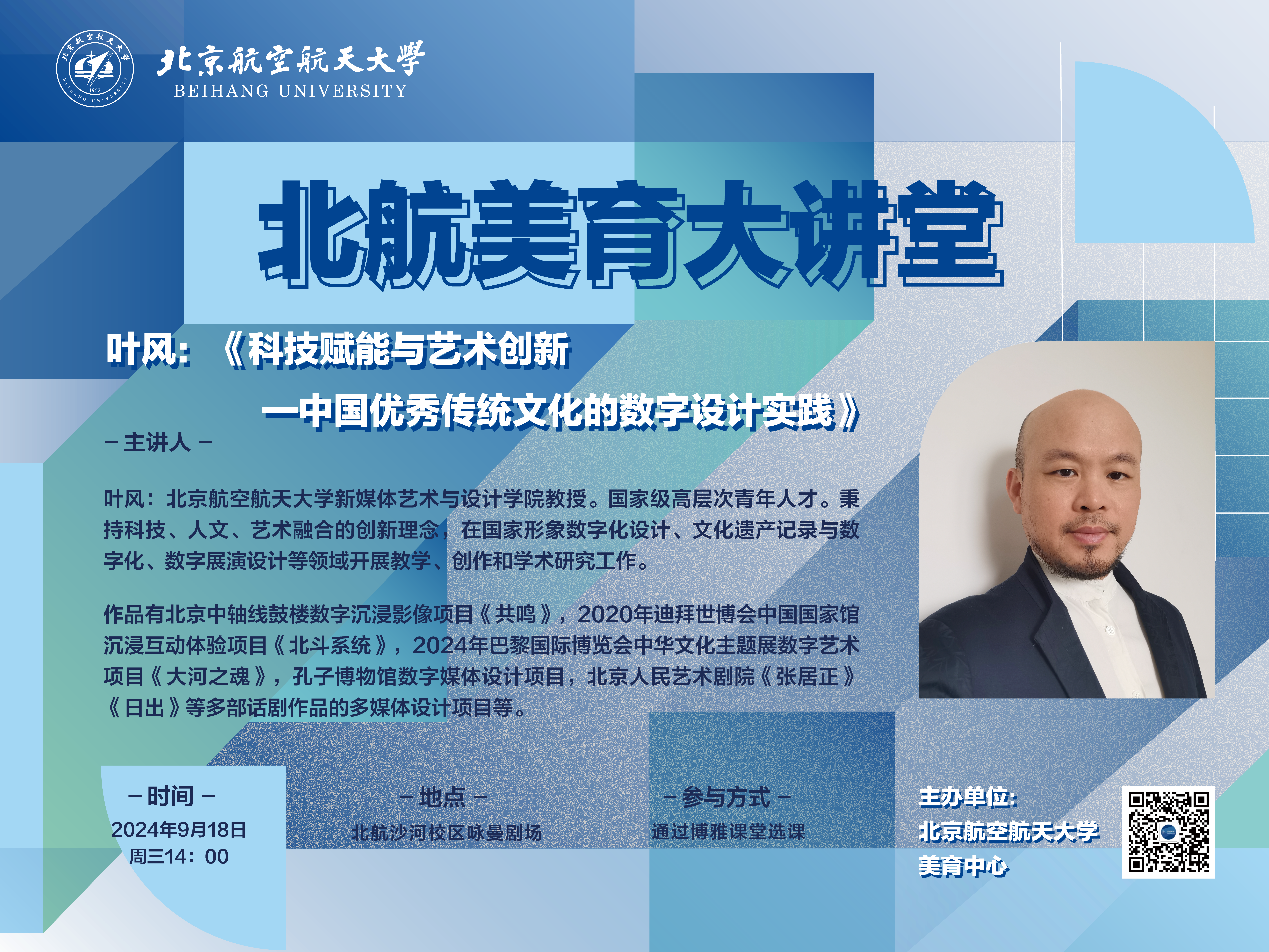 本次讲座主要从三个方面探讨科技与艺术的创新和创作关系:先进科技发展与文化艺术创新的美学关系;数字技术在中国优秀传统文化传承与展演设计中的实践案例分享;科技与艺术融合创新的未来发展趋势分析。