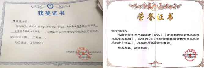 在北航任教以来,桂海潮共指导了10名硕士、博士研究生,其中有3名已经顺利毕业。把立德树人作为根本任务,他全身心投入教学工作和学生培养,全方位关心关爱学生的发展。在学生们眼中,桂老师是一个在学术上严格细致、在生活中风趣热心的人。