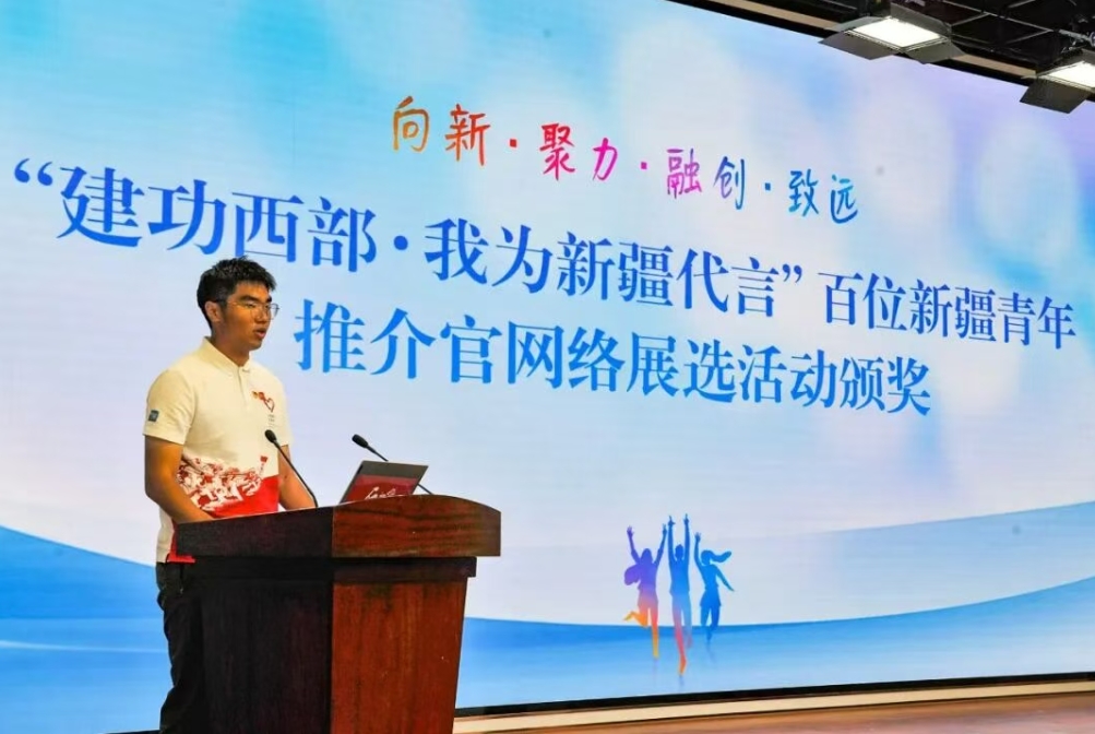 在活动颁奖现场,班继晨代表全疆8000余名西部计划志愿者发言:“我要做到不仅是支教期的工作者,更是两地长期的连接者,用我们的实际行动建功西部,为我们所热爱的新疆代言,书写新时代支教青年的新疆答卷!”